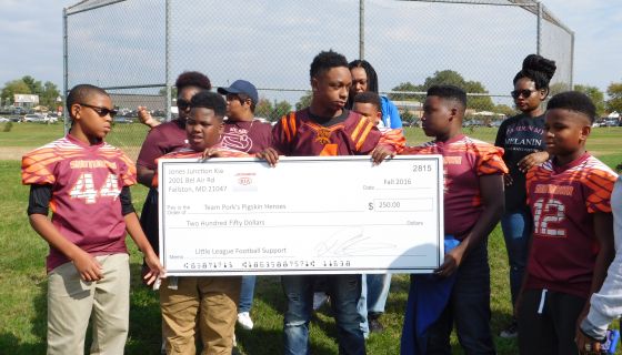 Pork’s Pigskin Heroes, powered by Jones Junction, is moving up because this game was scheduled on NFL Sunday!! Although there was a forfeit, Parkside Shutdown Warriors were happy to receive donation check from Jones Kia. Check out these pics with those that stayed, including 92Q’s Porkchop as well!! Parkside said a forfeit can’t “Shutdown” our Football Fun!!